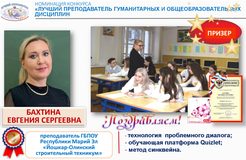- «Лучший преподаватель гуманитарных и общеобразовательных дисциплин»;